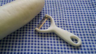 ① イモを割る