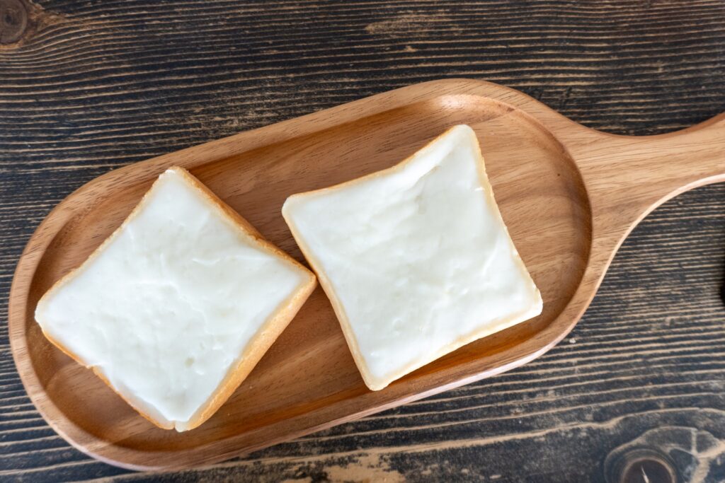 - 厚切り食パンに白いミルククリームをのせた郡山市民のソウルフード